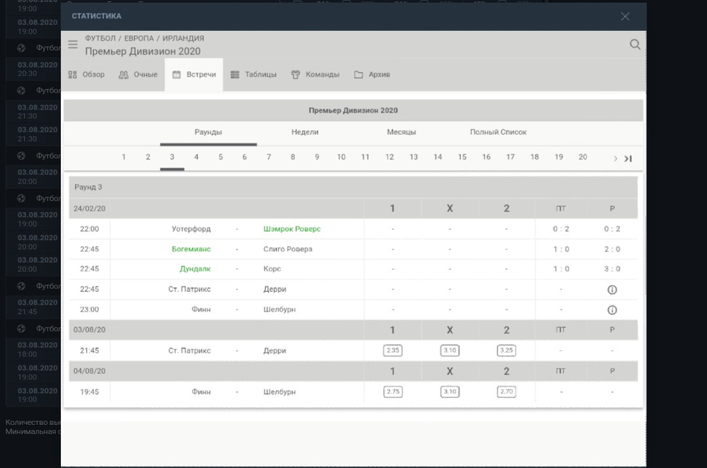 - На основной и мобильной версии сайта БК для каждого события купона предоставляется статистическая сводка (очные встречи команд, предыдущие матчи, турнирные таблицы, архив по выступлениям в чемпионатах), а также визуализация (видео или анимационная трансляция);