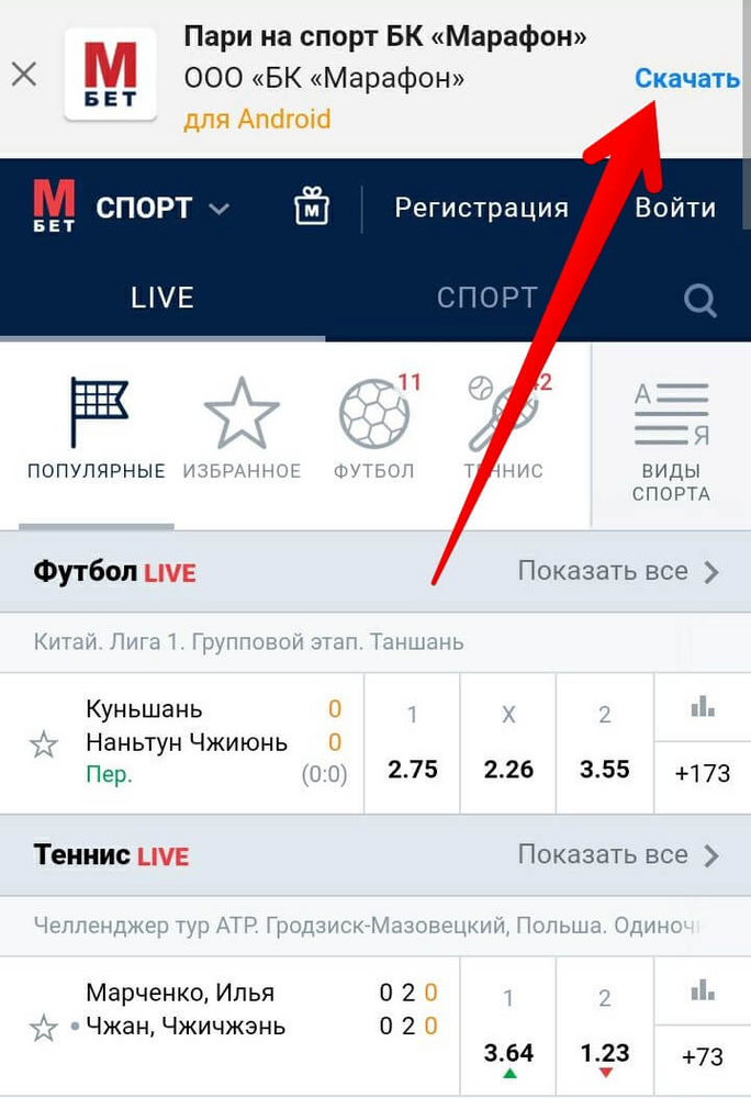 - По прямой ссылке: скачать APK приложение БК Марафон на Android