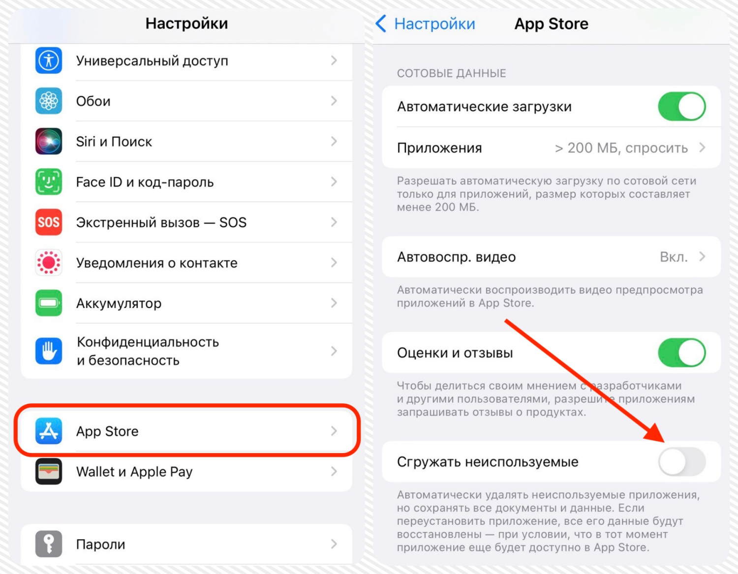 Как отключить опцию «Сгружать неиспользуемые» на iPhone