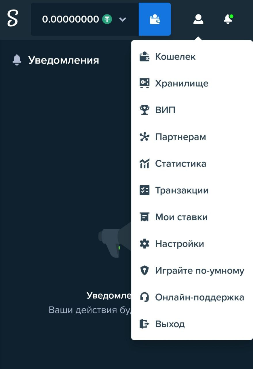 Принцип работы Stake – поощрение активности игрока. Поэтому все действия внутри аккаунта отдельным образом иллюстрируются оповещениями.