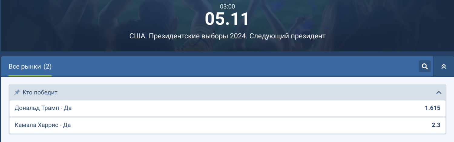 Относительно недавно, 22 августа, было официально объявлено, что от демократов этим самым конкурентом выступит Камала Харрис. Сейчас по линии 1xBet поставить на её победу можно с коэффициентом 2,30.