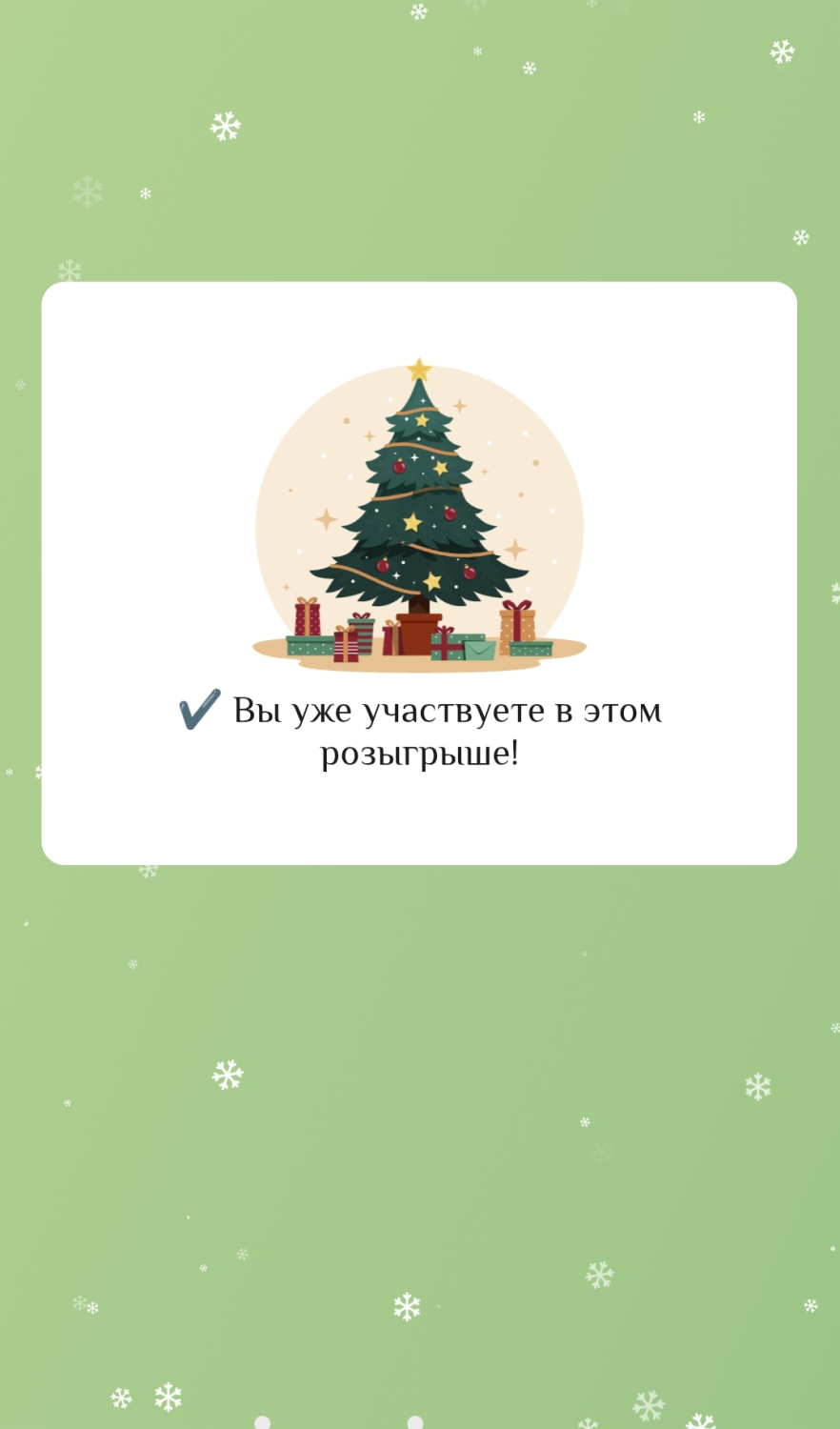 Проверка проходит за несколько секунд. Если всё сделано правильно, появится оповещение об участии в розыгрыше призов.