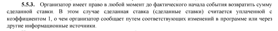 Условия у разных букмекеров в целом схожи, особенно в части защиты их собственных интересов. Приведённые ниже примеры наглядно демонстрируют этот принцип.