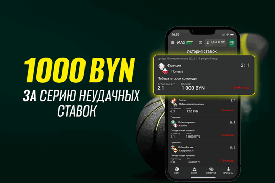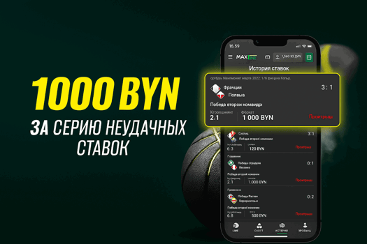 В зависимости от суммы минимального пари, можно получить компенсацию до 1000 BYN в виде фрибета.