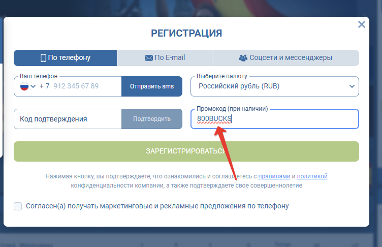 - Если при регистрации вы используете промокод 800BUCKS, то максимальная сумма бонуса увеличится до 800 долларов (проценты начисления останутся теми же).
