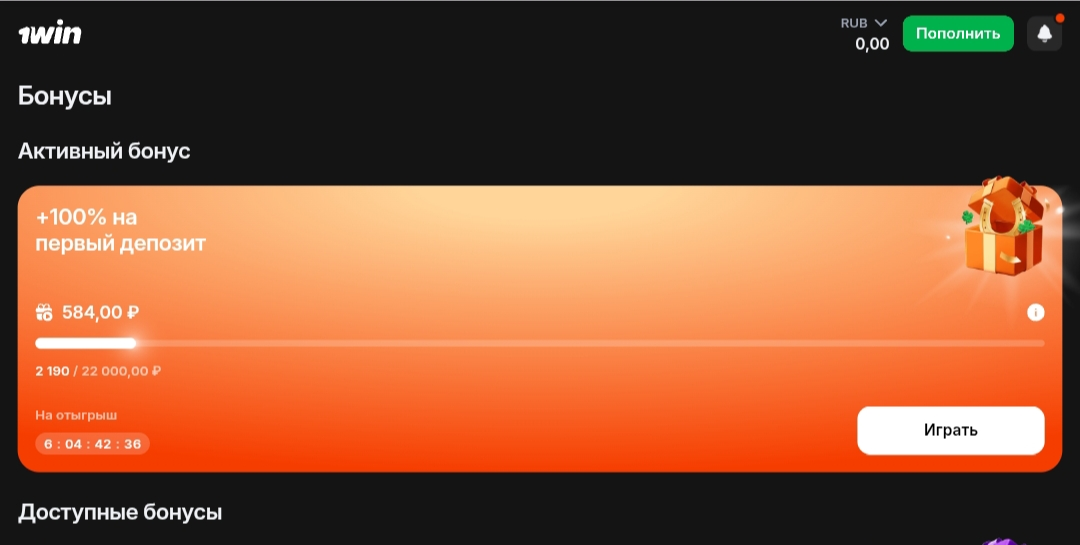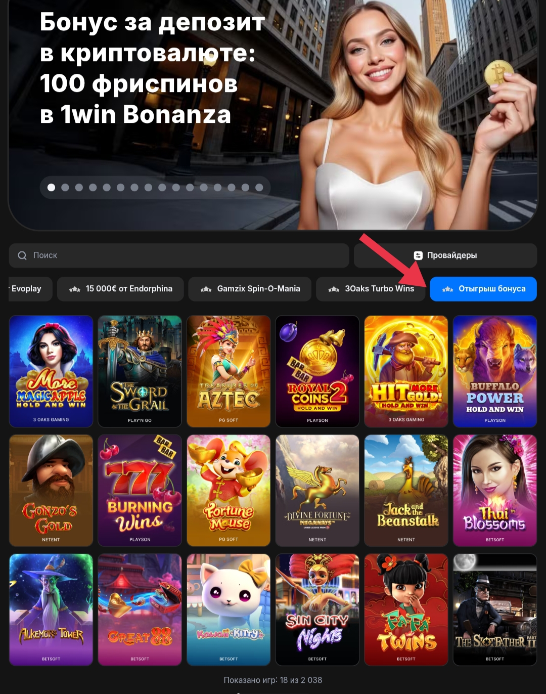Бонусные деньги от 1win можно использовать только в разделе казино «Отыгрыш бонуса» (свыше 2 000 игр на выбор). То есть никаких ставок на спорт на бонусы.