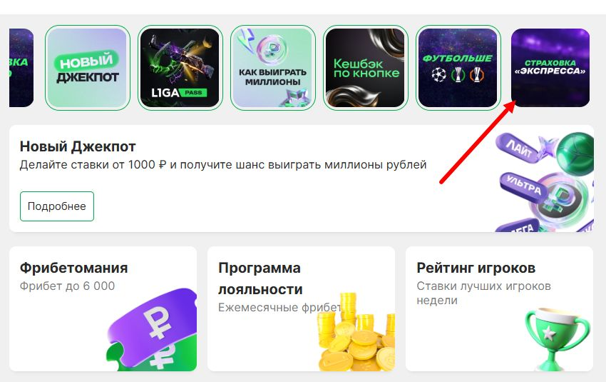 Пример: игрок собрал экспресс из шести событий, добавив матчи Лиги чемпионов, РПЛ и НХЛ. Коэффициенты каждого исхода – от 1.6. Если одно событие не сыграет, «Лига Ставок вернет сумму ставки фрибетом.
