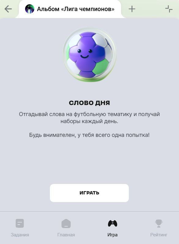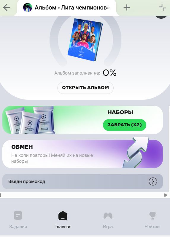 - Перейти в Telegram-бот «Альбом Лига чемпионов».