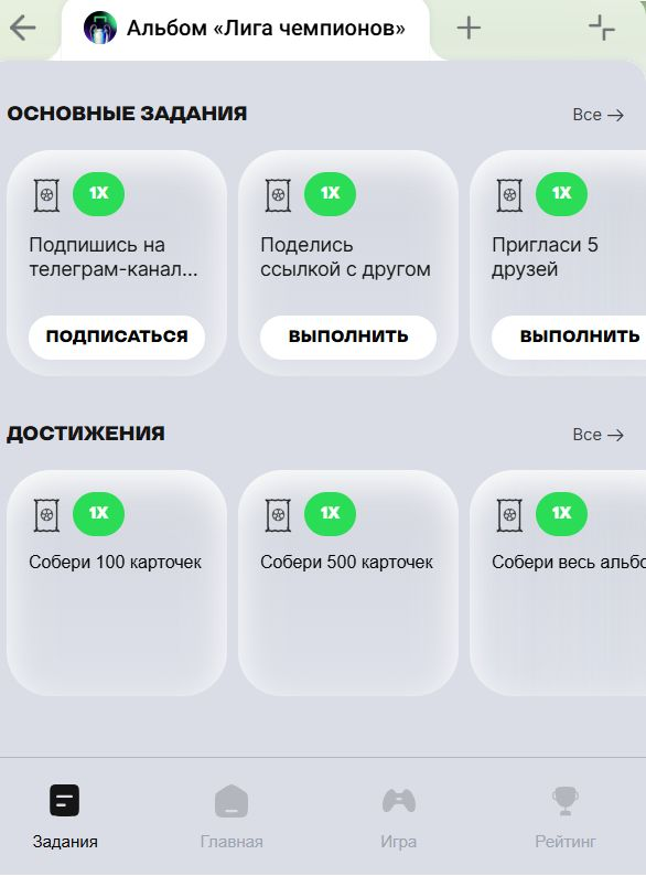 - Получить первую коллекционную карточку и перейти к выполнению заданий.