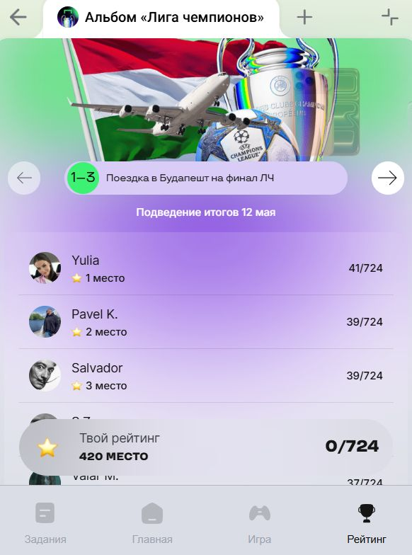 Всего возможно набрать 724 балла — они формируются за задания, достижения, участие в игре и собранные карточки. В зоне призов — 30 верхних мест.
