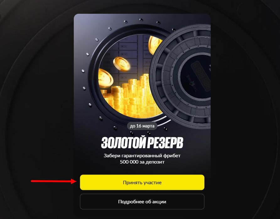 - На странице акции «Золотой резерв», которую можно найти в разделе бонусов, нажать кнопку «Принять участие».