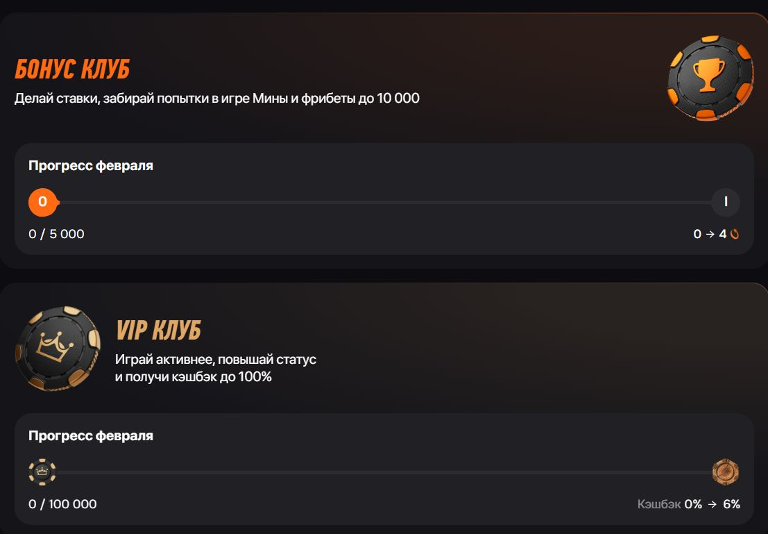 Ключевое нововведение — участие в обоих клубах одновременно. Игрок получает фрибеты по Бонус-клубу и кэшбэк фрибетами по VIP-клубу независимо друг от друга.
