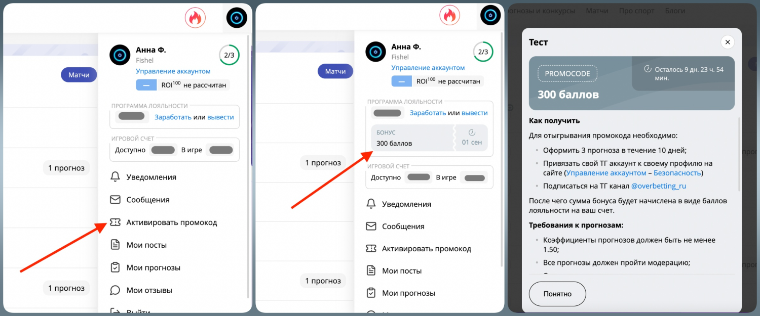 - После активации промокода бонус необходимо отыграть — оформить 3 отдельных прогноза с коэффициентом от 1,50 за 10 дней.