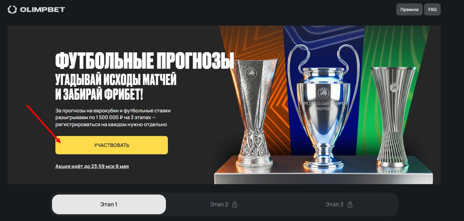 На каждом этапе акции разыгрывается 1 500 000 рублей фрибетами. Призы получают 100 лучших участников турнирной таблицы.