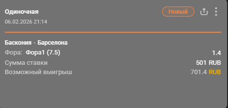 💡 Победа «Басконии» с форой (+7.5) очков за 1.41