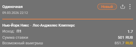 💡 Победа «Нью-Йорк Никс» за 1.81