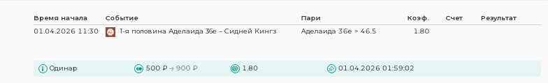Индивидуальный тотал 1 Больше (46.5). 1-я половинаСтавка: 500Проигрыш: -500 Результат: 92:91 (22:24 24:29 26:21 20:17)