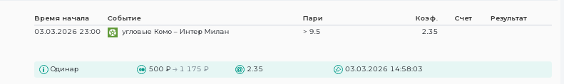 На мой взгляд, есть смысл ждать атакующий футбол, как минимум, в первом матче этого противостояния, когда итоговый результат будет не так сильно довлеть на обе команды. Все-таки не стоит забывать, что Интер - самая результативная команда итальянской Серии А в этом сезоне, а Комо идет в ТОП-3. Однако это все-таки Кубок и результативность вполне может и не быть высокой, особенно на Джузеппе Синигалья. Поэтому предлагаю обратить внимание на такой статистический компонент, как угловые удары, тем более тотал на этот матч выставлен совсем небольшой.