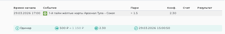 Сокол идет в ТОП-3 по получаемым желтым карточкам в этом сезоне - 2.6 в среднем за матч, поэтому стороной это дело обойти точно никак нельзя. Тем более, что и Арсенал здесь может похвастаться приличными 1.9 жк за матч. Но лично мне бросился в глаза тот факт, что в последнее время обе команды частенько хватают много предупреждений уже до перерыва.