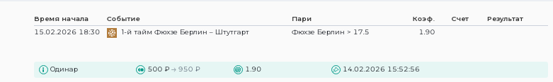 💡 Берлинцы набрали ход, есть очень серьезная турнирная мотивация, а значит настрой даже на аутсайдера должен быть очень серьезным. При таких раскладах у хозяев паркета будут все шансы забросить 18 мячей уже по итогам первого тайма этой игры.