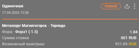 Металлург – Торпедо: победа Металлурга с форой (-1.5) / Для конкурса «Ставкомат»